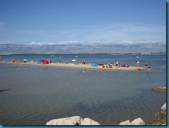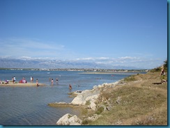 Nin se encuentra además rodeada de playas de arena, algo que no es nada habitual en Croacia. Es una zona poco desarrollada turísticamente, y cuando sopla el viento fuerte desde el macizo Velebit, es mejor dejarla para los surfistas. Nosotros tuvimos suerte y no había viento. La verdad es que la impresión que nos quedó de aquella playa, de indudable belleza, es que estábamos en una playa española de los años sesenta. Un ambiente familiar y bastante caduco o por decirlo de otro modo ñoño, invade el ambiente, poco glamour.