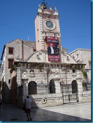Desde aquí la calle Siroka, nos lleva hasta la Plaza Narodni, antiguo corazón del Zadar veneciano, donde se encuentra el ayuntamiento de estilo veneciano con una logia y un cuartel del s.XVI. En este paseo podemos admirar los elegantes edificios de estilo veneciano que le dan el carácter a esta ciudad.