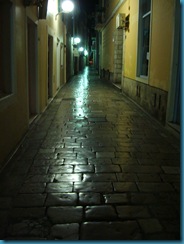 Y después de la cena y este agradable paseo, desandamos el camino hecho, volvemos a recorrer las empedradas calles de Zadar, ahora solitarias, en cuyas relucientes lozas de piedra se refleja la luz de los edificios de una ciudad cargada de historia, que ha sabido rehacerse y volver a resplandecer después de las duras vicisitudes por las que ha tenido que pasar, manteniendo pese a todo ese irresistible encanto de ciudad hecha a la medida del hombre desde la antigüedad y que no deja indiferente a nadie que la visita.