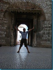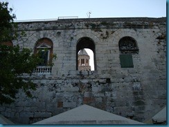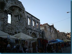 Después de ver la cúpula nos dirigimos hasta el puerto de Split, donde dimos un paseo circundando por el exterior el Palacio de Diocleciano. Desde este sitio se puede comprobar como las murallas del palacio sirven de muros a viviendas posteriores, mostrando todo una perfecta integración de estilos.