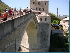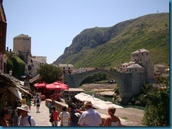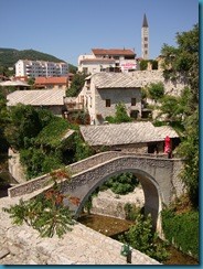 El puente de Mostar siempre ha sido considerado todo un símbolo por servir de unión entre las dos culturas en que está dividida la ciudad, con los católicos croatas al oeste y los musulmanes bosnios al este del río Neretva. Al comienzo del conflicto bélico en Mostar, croatas y musulmanes se aliaron para expulsar a los serbios, pero una vez conseguido este objetivo, se declaró una nueva lucha entre musulmanes y croatas por tomar el poder de la ciudad. Su destrucción durante la guerra supuso, por ello, el derrumbamiento de todo un símbolo de la convivencia entre culturas, de la que la ciudad había sido siempre un claro ejemplo. El puente, símbolo clave en la reconciliación de ambas culturas tras la finalización del conflicto en 1995, fue reconstruido con fondos de la Unesco e inaugurado en el 2004, contribuyendo así a la convivencia entre ambas culturas. Preciosas las vistas que se ven de la ciudad desde el puente sobre el río Neretva.