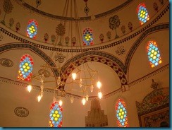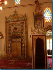 Destaca su patio de abluciones con la fuente y en su interior su sencilla elegancia, las alfombras persas, el mihrab y la cúpula.