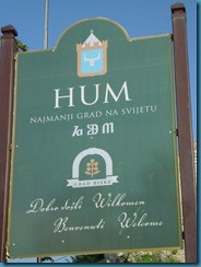 En la parte central de Istria, 14 km al sureste de Buzet, se encuentra la ciudad más pequeña del mundo que cuenta con solamente 23 habitantes y se llama Hum. La pequeña ciudad se menciona por primera vez ya en el año 1102, pero bajo el nombre de Cholm y por eso en Italia hasta hoy este lugar se llama Colmo. Si bien apareció en la Edad Media, Hum conservó todos los rasgos de la arquitectura urbana de ese entonces características para pueblos acrópolis y si bien era muy pequeña fue el centro de la escritura glagolítica en la Edad Media.