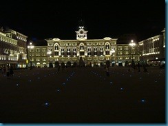 Después de una reparadora y refrescante ducha en el Hotel, nos dirigimos a la estación para sacar los billetes de tren del día siguiente a Venecia. Cenamos en un Kebap frente a la estación y dimos un último paseo por Trieste hasta la Plaza de la Unidad de Italia, para ver su estupenda iluminación nocturna.