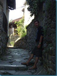La carretera pasa por multitud de localidades turísticas, junto a pequeñas calas de rocas y gravilla. La hora del almuerzo nos llegó cuando pasábamos por Crikvenica, cuando llevábamos ya 330 km de viaje. Así que paramos allí y buscamos un restaurante para comer. En un paseo peatonal muy tranquilo a esas horas del mediodía, se supone que todo el mundo estaría en las playas, entramos en un restaurante, donde degustamos unos calamares fritos y una ensalada. Algo sencillo y ligero porque había que continuar el viaje.