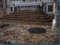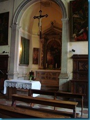 También fue novedosa en Venecia la finísima decoración taraceada de mármoles verdes y blancos de impresionante efecto decorativo, perfectamente ajustados con el blanco y oro de los estucos del techo, obra de Abondio Stazio. No se puede dejar de admirar el espléndido púlpito y el tapiz de mármol del altar mayor, en los que es realmente discernir si se trata de mármol o tela.