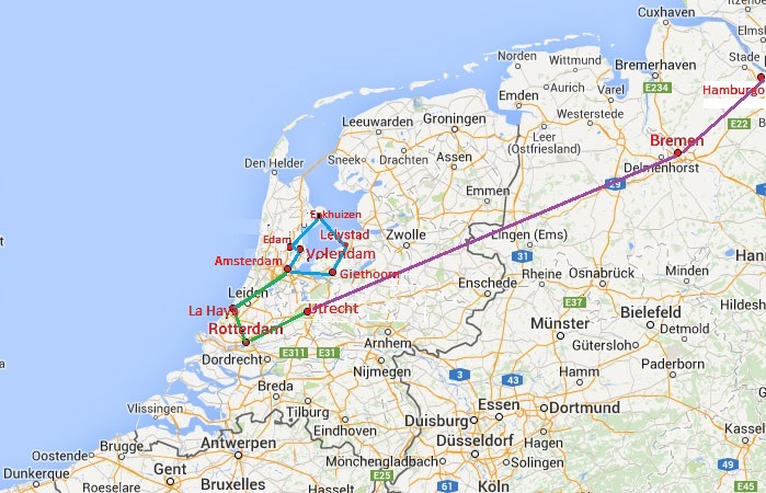 También necesitaríamos coger algunos trenes: Bruselas-Amsterdam, Utrecht-Bremen y Bremen-Hamburgo.