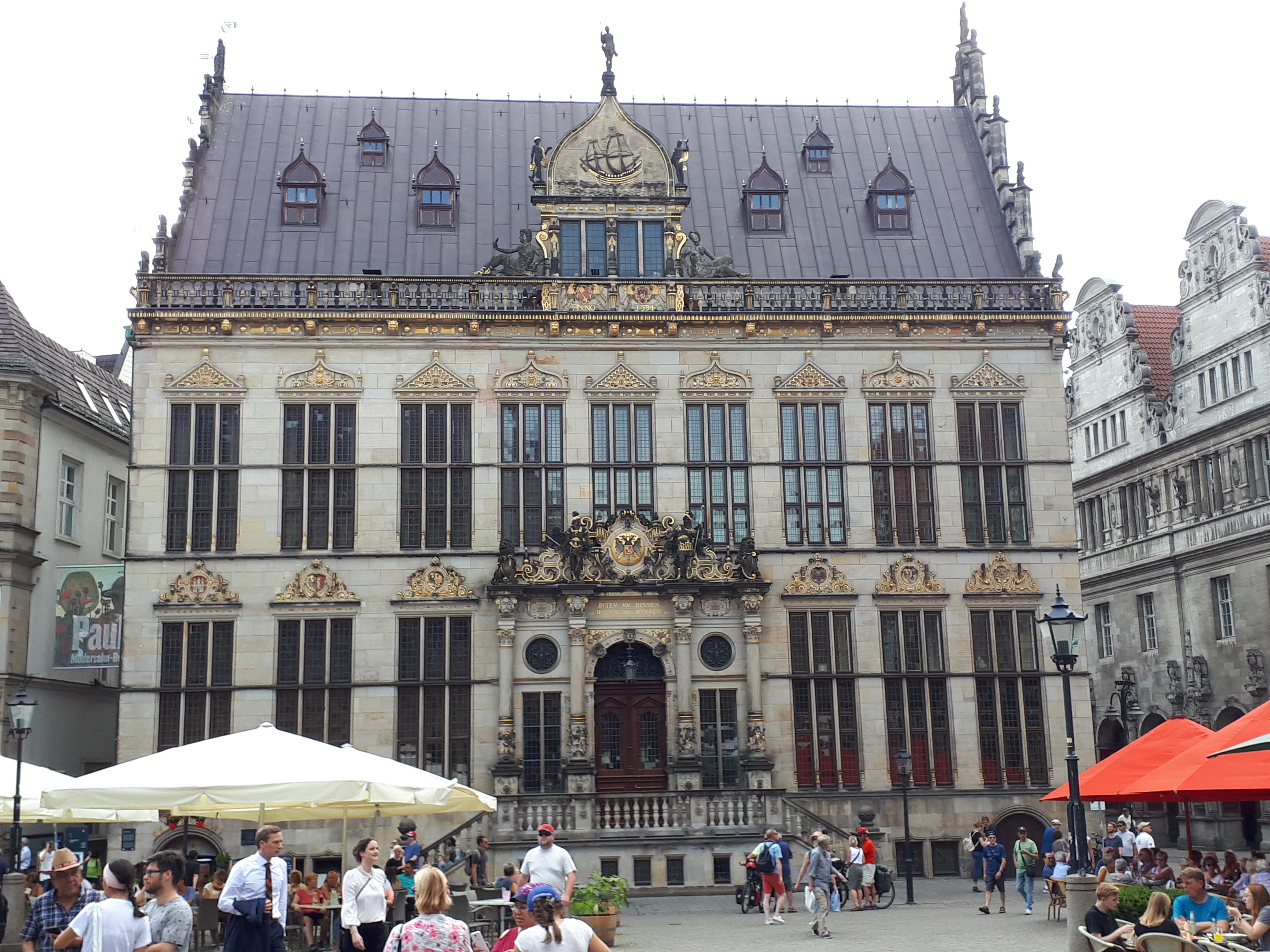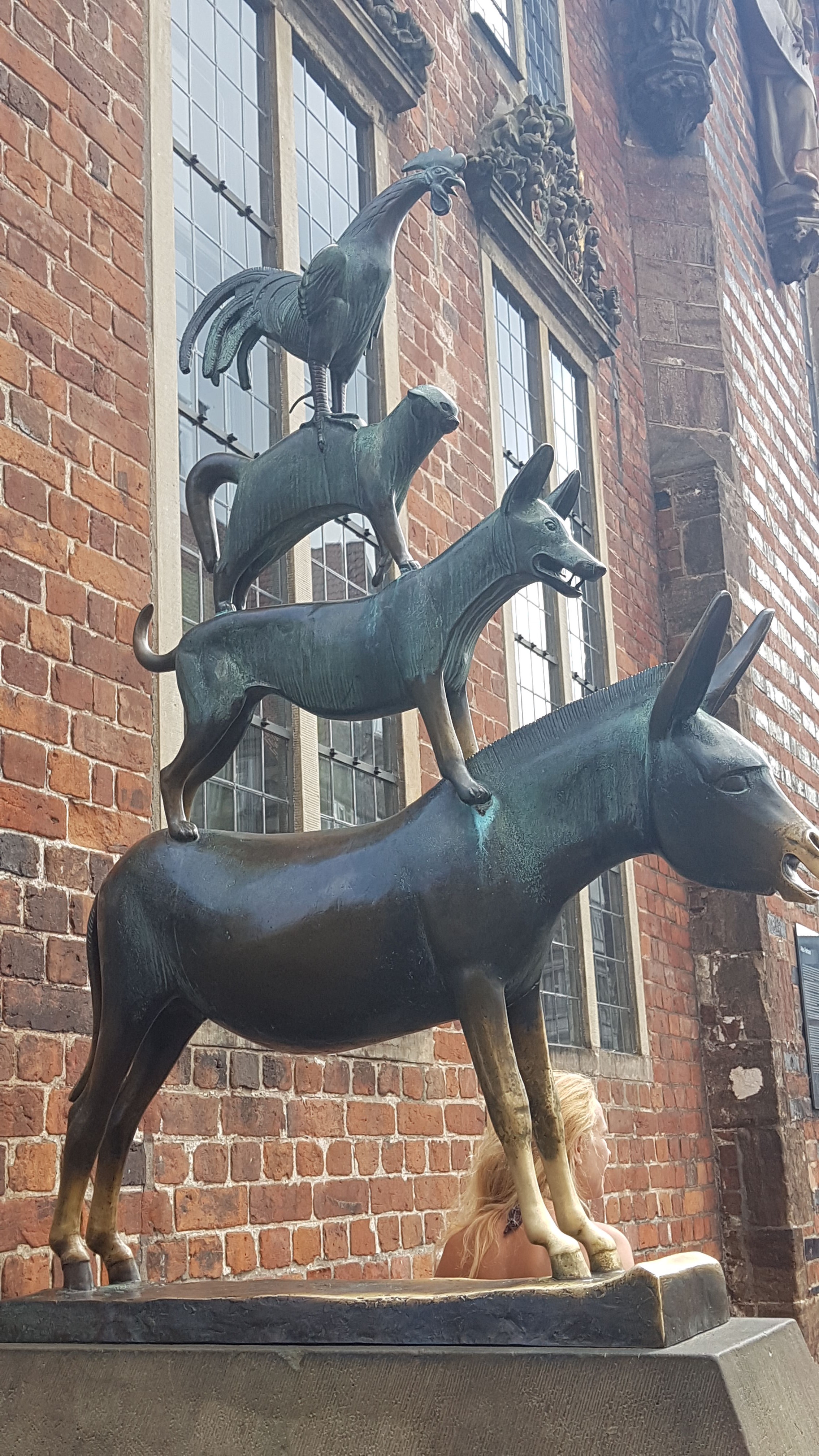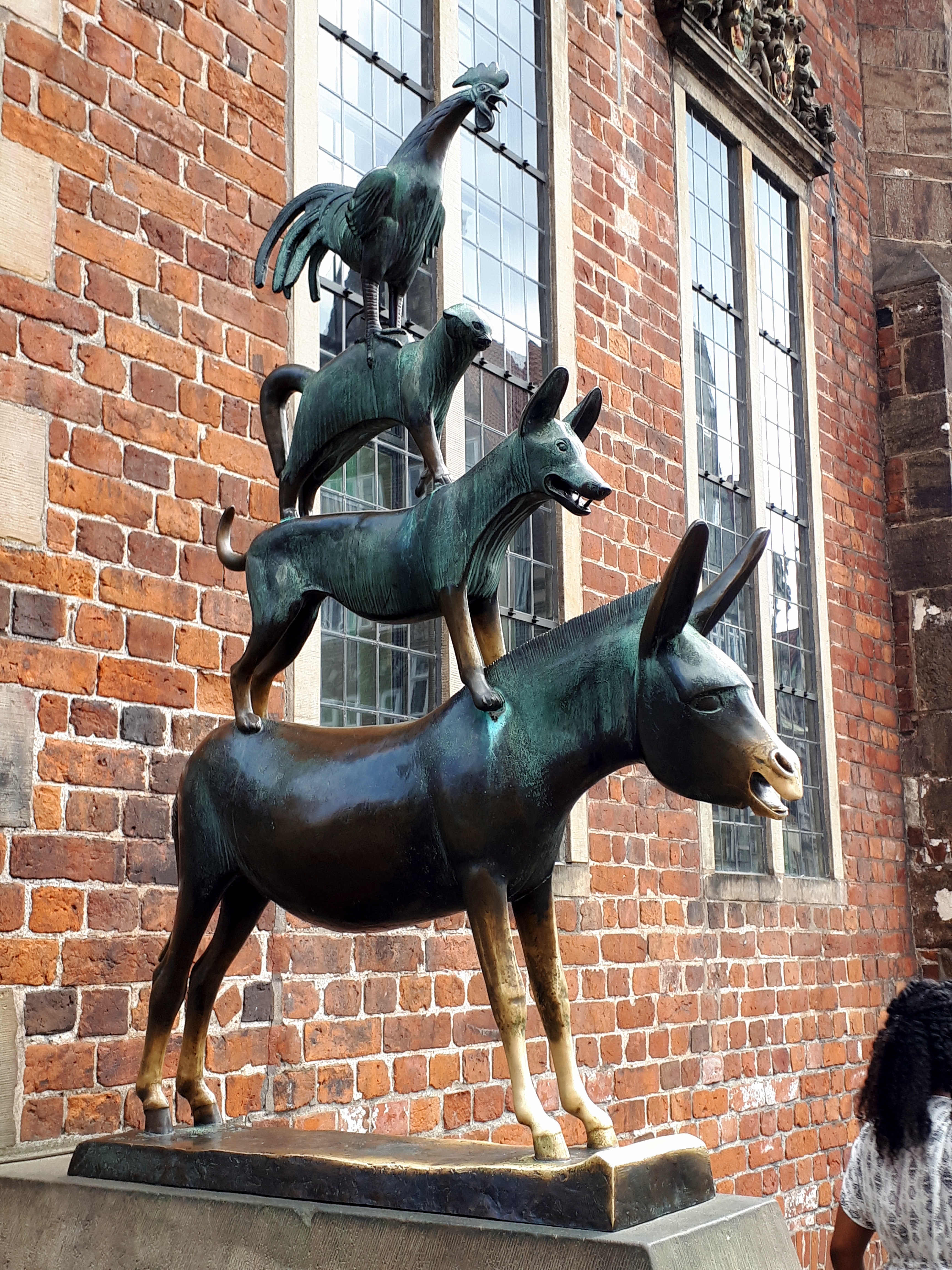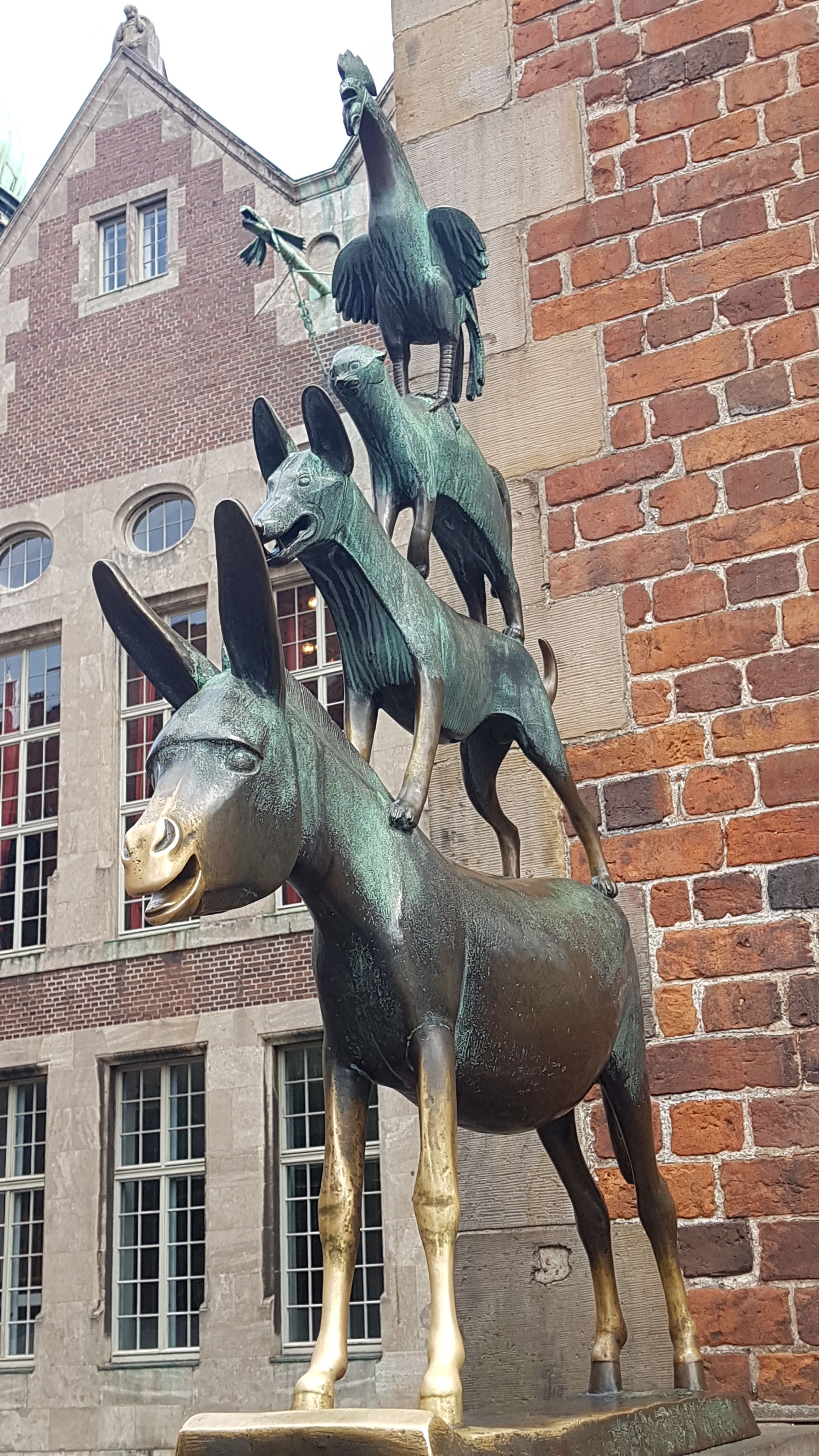 En la fachada izquierda del Ayuntamiento se encuentra la estatua en honor del cuento «Los Músicos de Bremen» erigida en 1523, y que la gente tiene la costumbre de tocar las patas delanteras del burro porque dicen que da suerte.