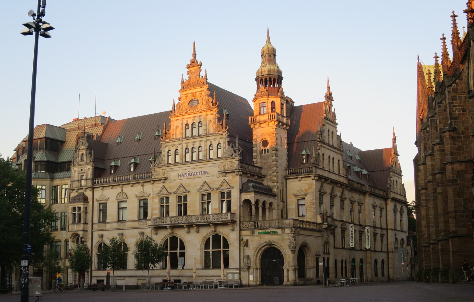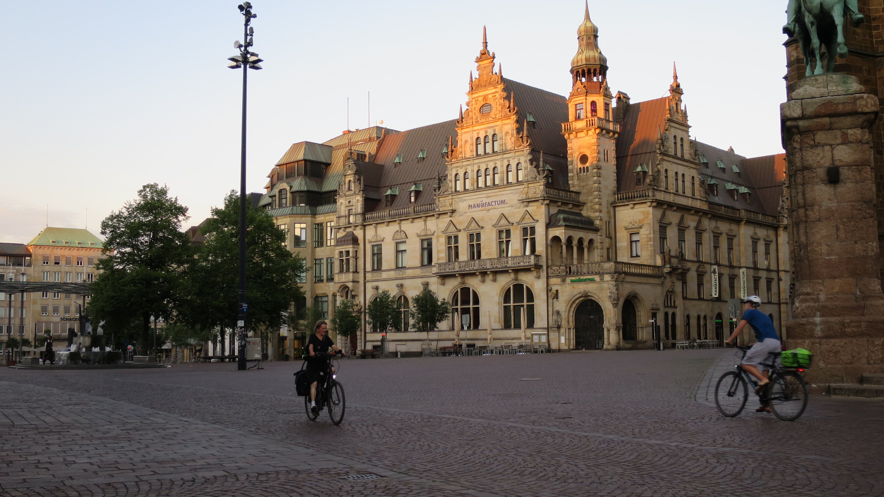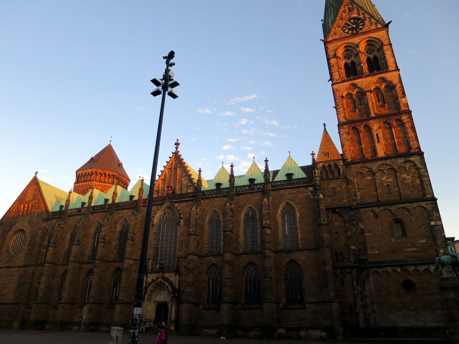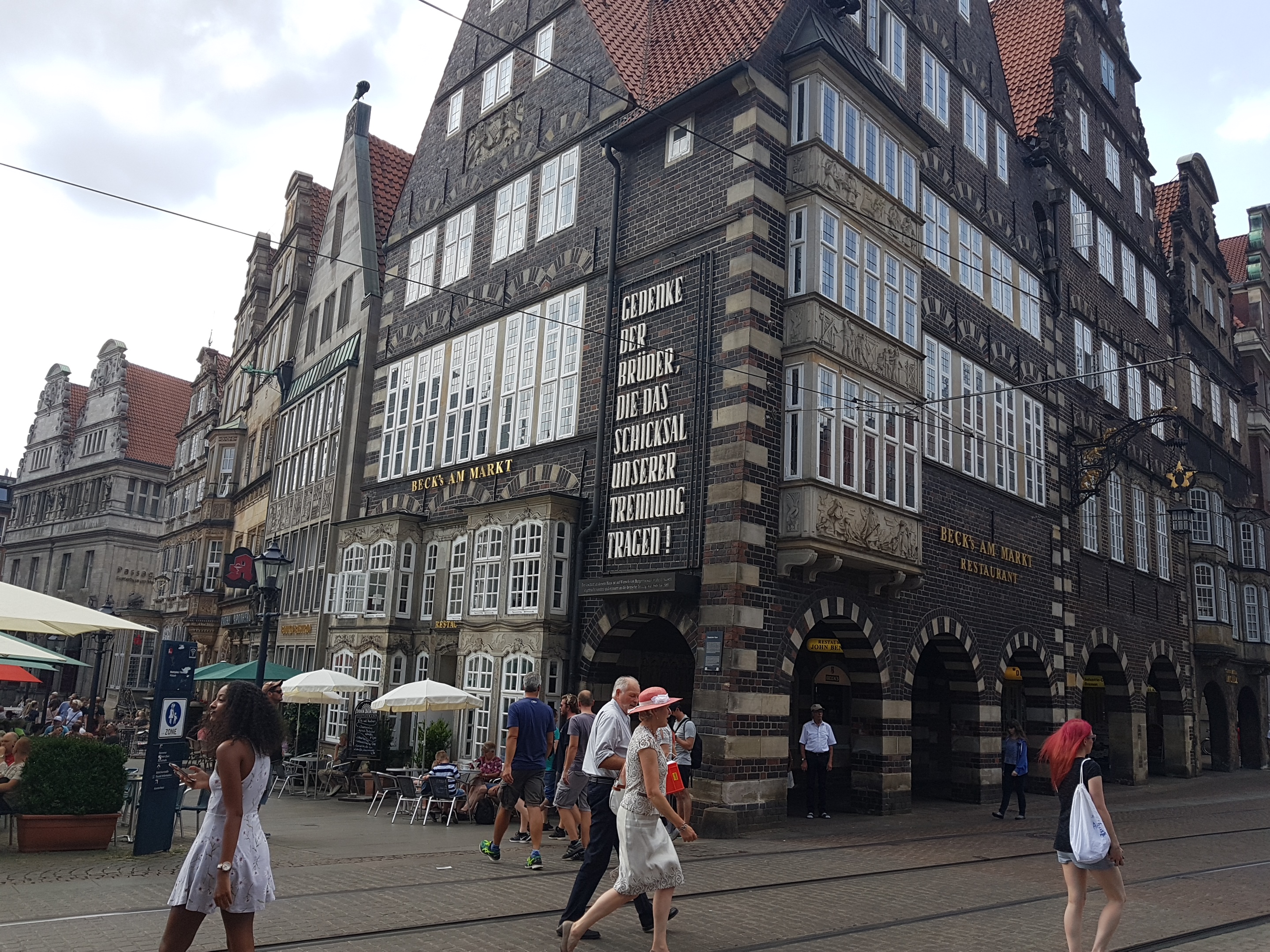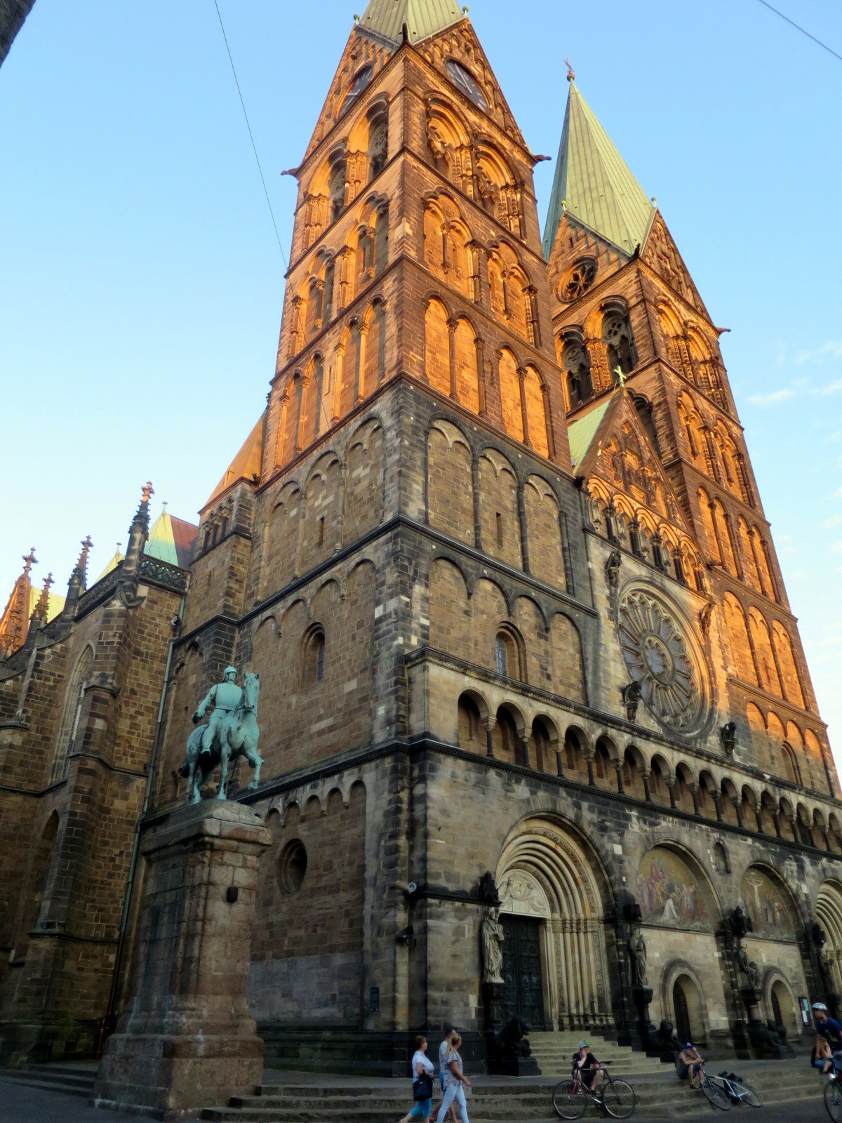 Regresamos, por tanto, a través de la calle Sandstrasse y la plaza Domshof, en el lateral del Ayuntamiento hasta la Marktplatz. En esta ultima plaza se puede ver la monumentalidad de la Catedral de San Pedro y frente a ella la mole cudrangular que representa el Bremer Landesbank, unos de los bancos más importantes de esta región.