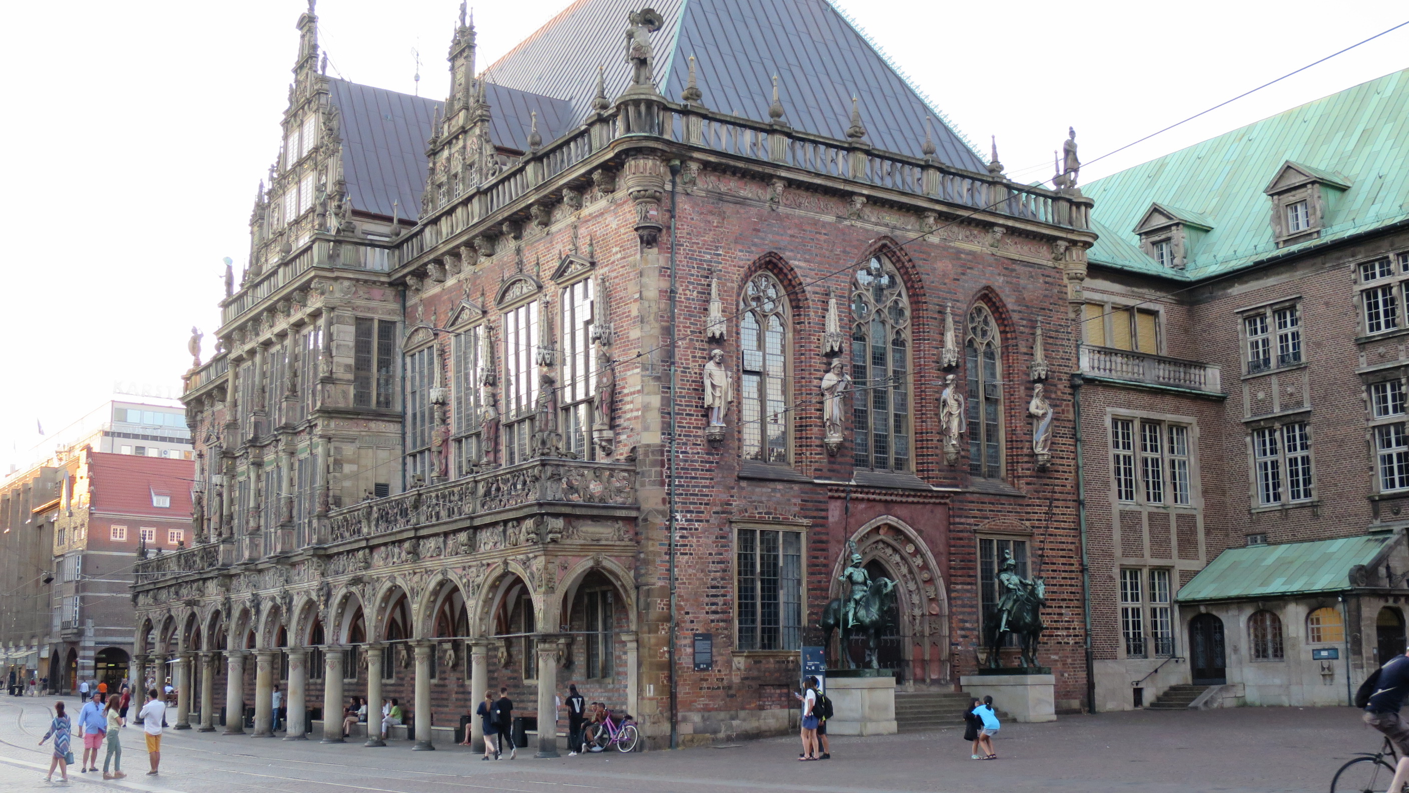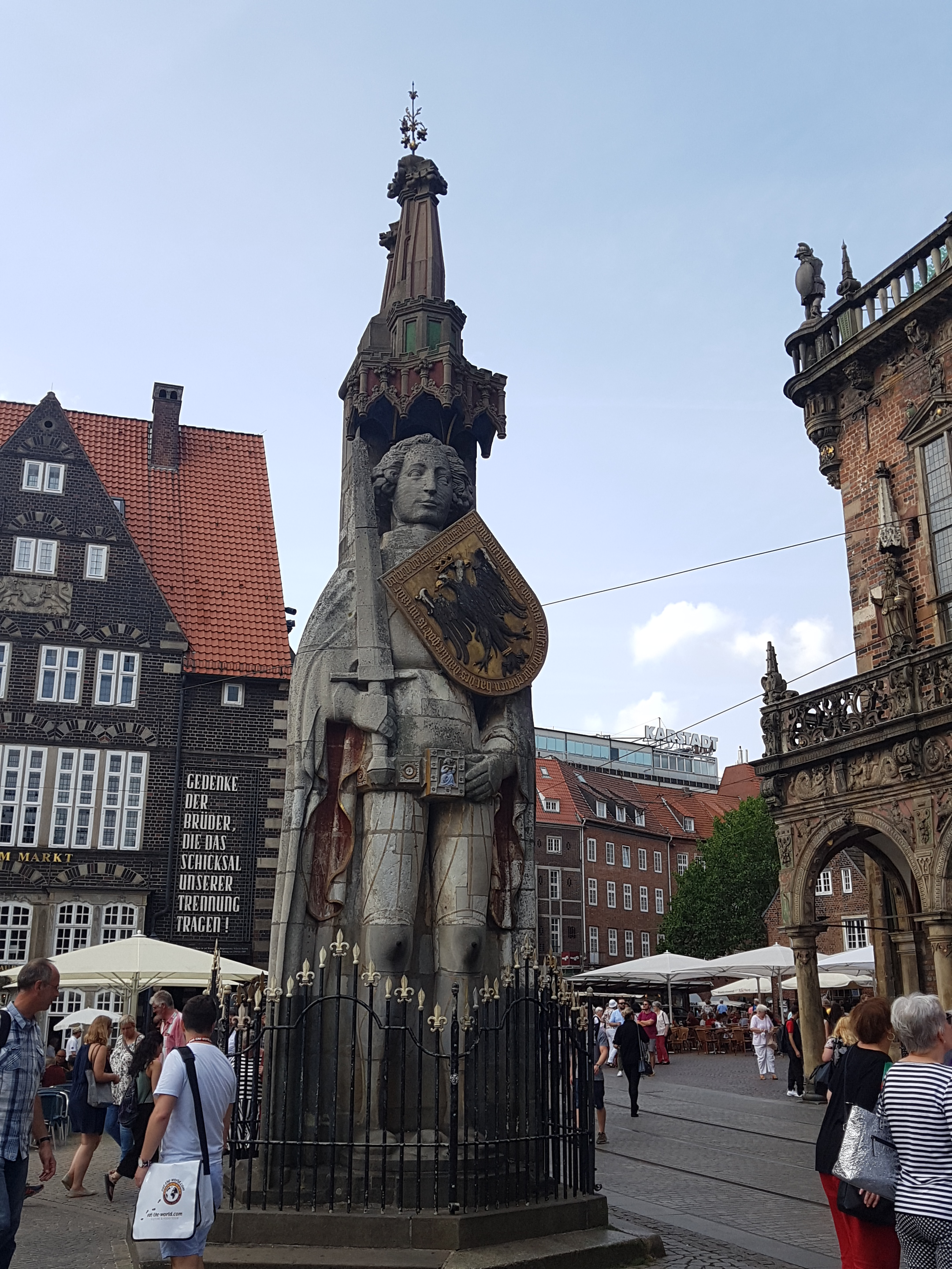 Frente al Ayuntamiento se encuentra la Estatua de Roland. Representa a un caballero medieval ataviado con espada y escudo, símbolos del honor, la justicia y la libertad de la ciudad. La estatua original de madera se quemó en un incendio y en 1404 se sustituyó por la actual estatua que mide más de 10 metros de alto.