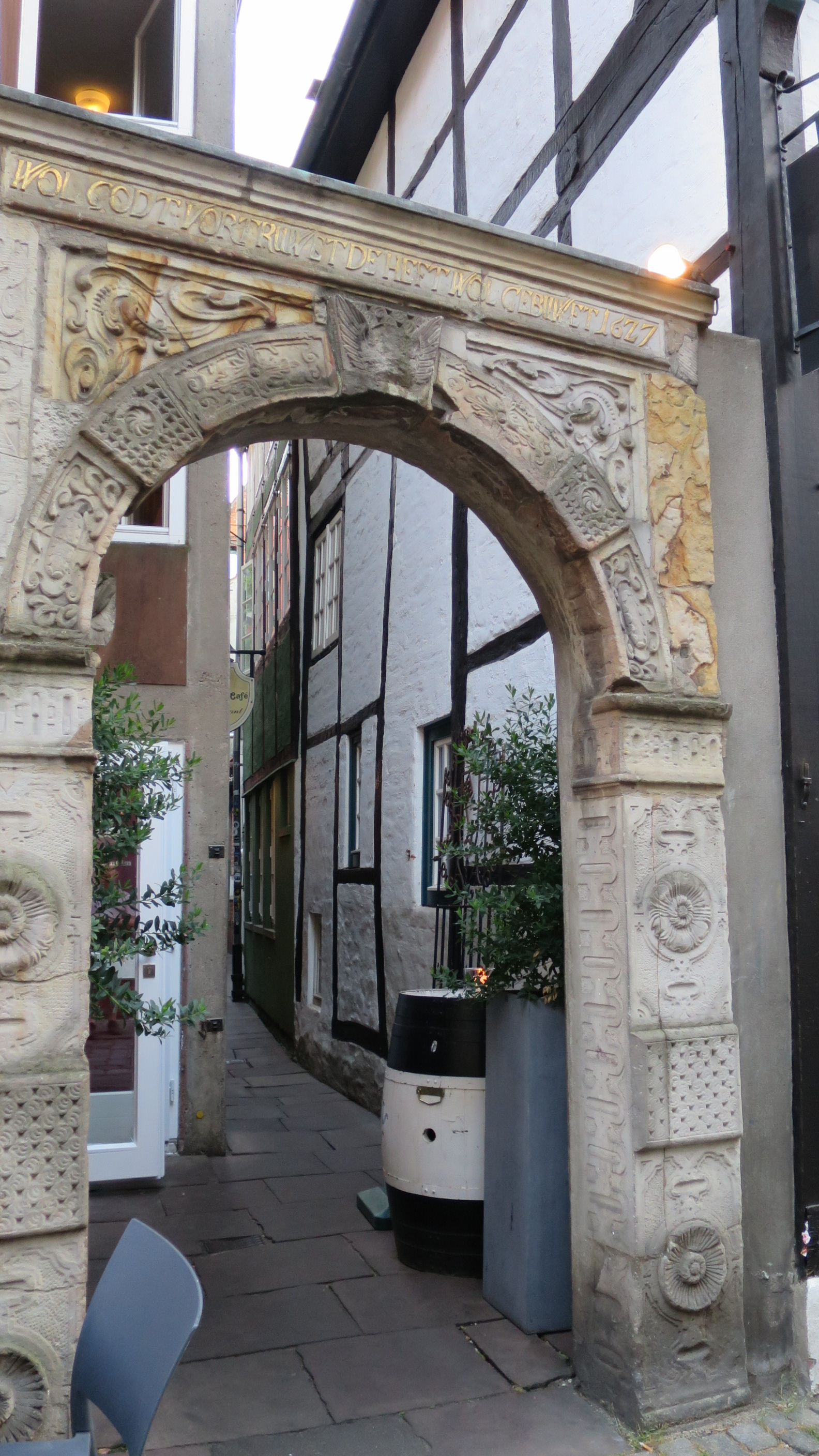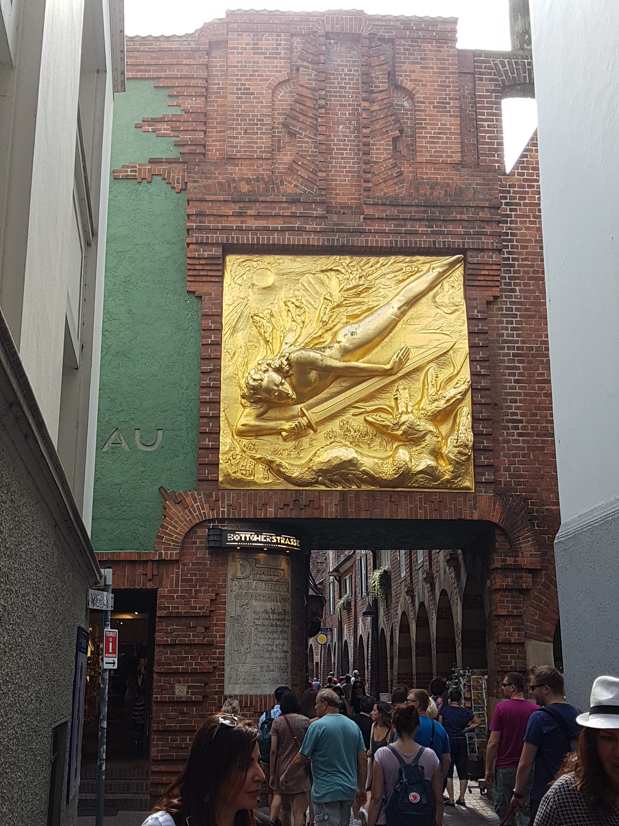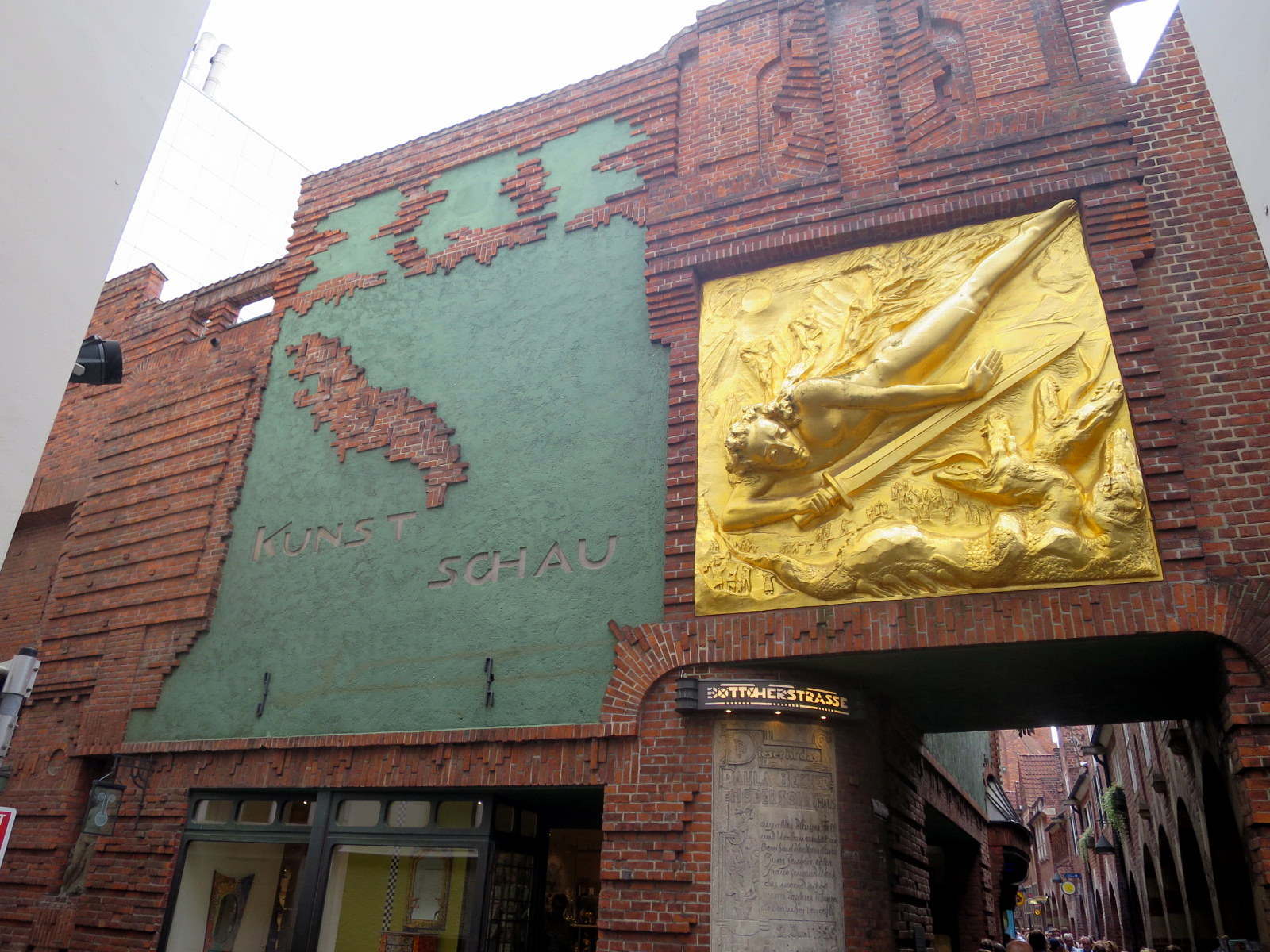 El edificio que hay al principio de la calle con un gran relieve dorado es la Casa Roselius. A principios del siglo XX el comerciante Ludwig Roselius, gran amante del arte, adquirió este edificio renacentista y lo reconvirtió en un museo donde se exponen obras de arte y mobiliario de su colección.