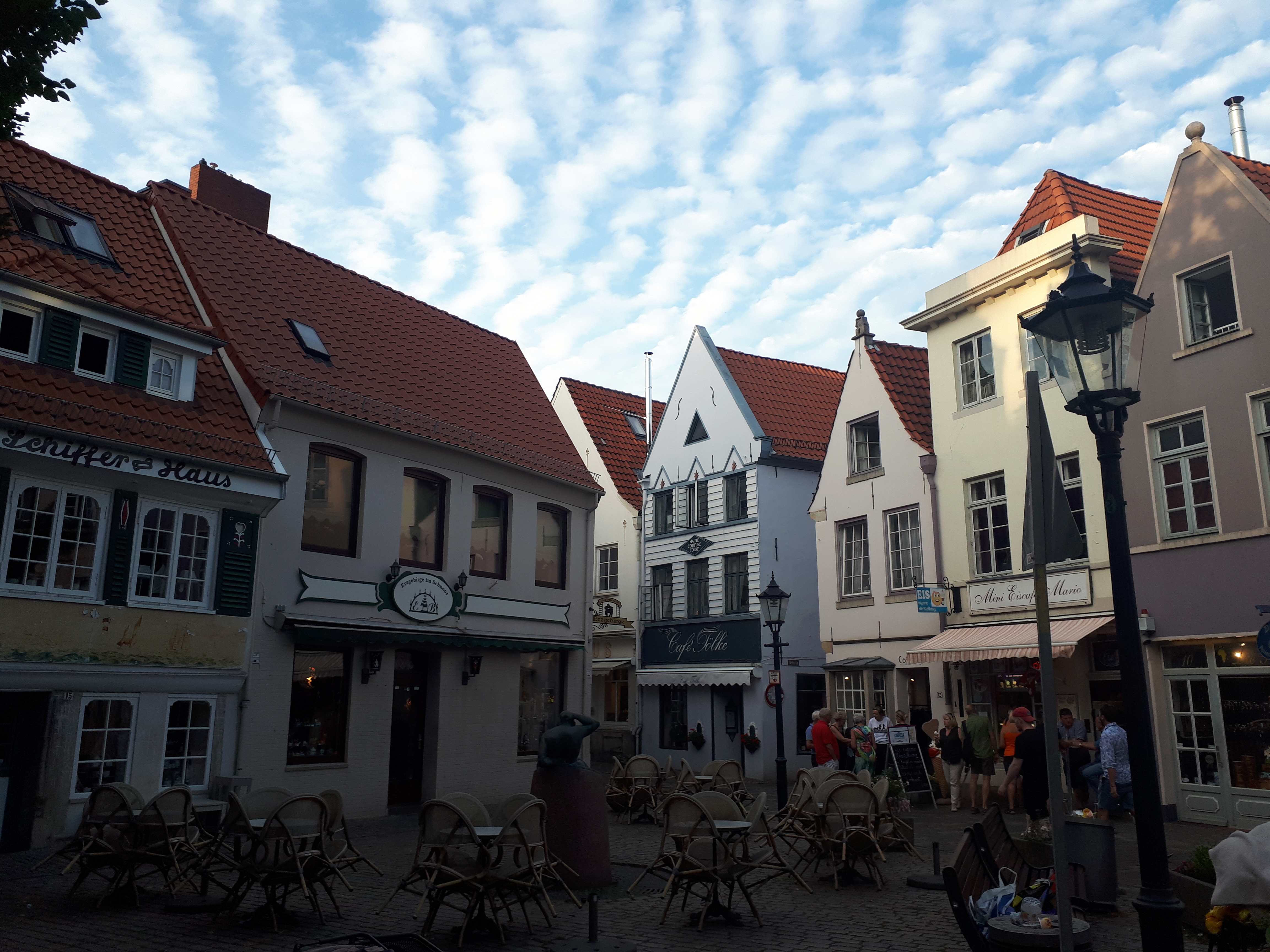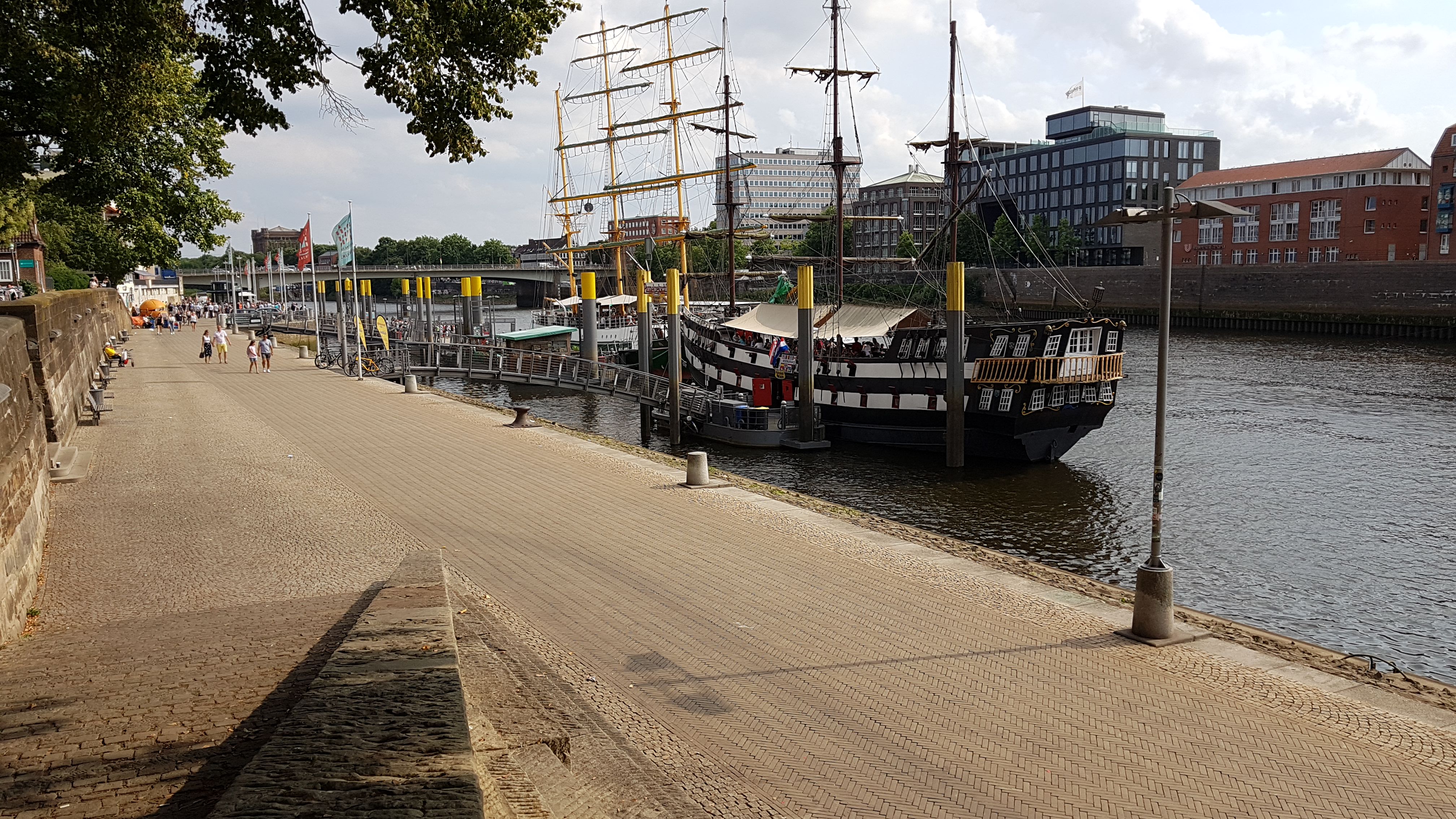 Como dije antes, la calle Böttecherstrasse desemboca en la Ribera del Wesser, el lugar más animado de Bremen con decenas de terrazas y bares. Aquí se encontraba el antiguo muelle de la ciudad pero con la fundación del nuevo puerto Bremerhaven, se fue remodelando hasta convertirse en una zona recreativa y de ocio.