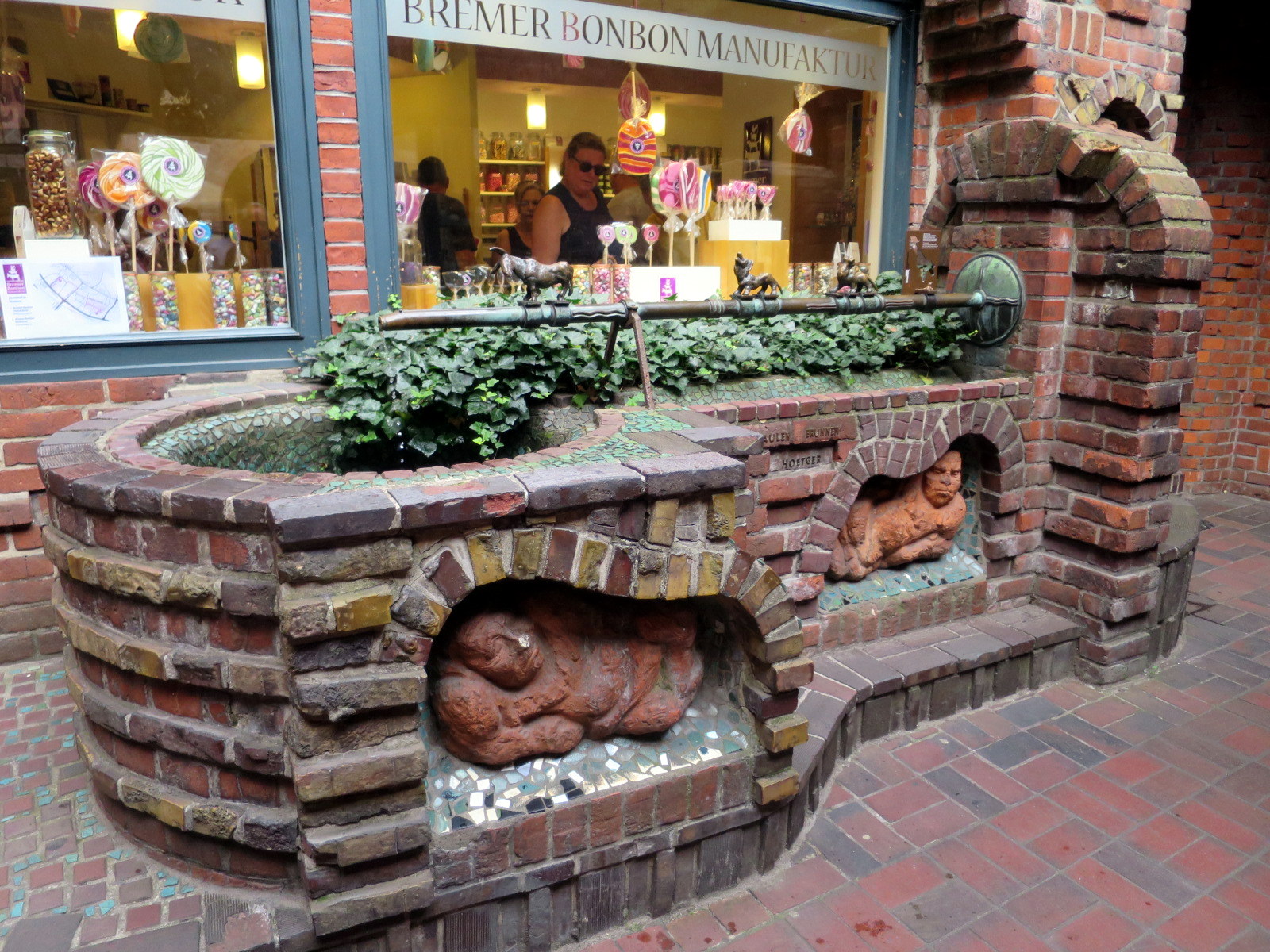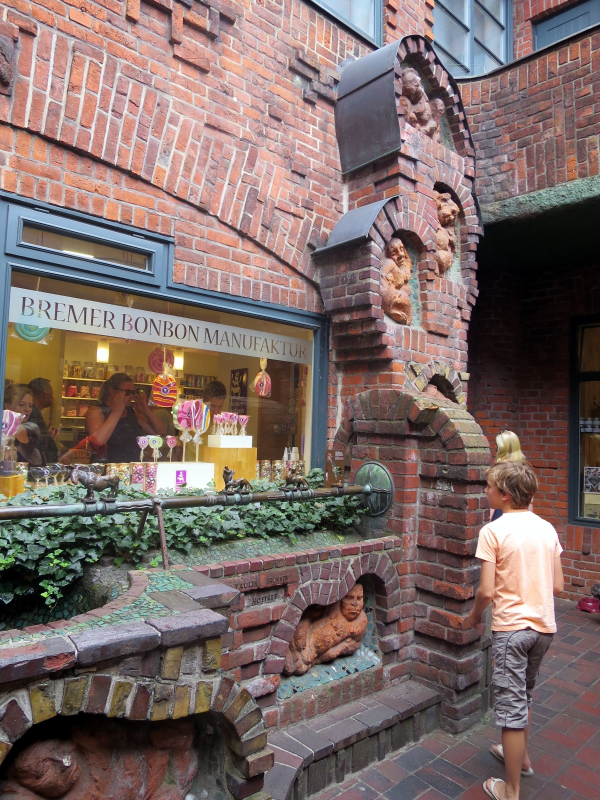 Avanzando por esta calle entramos en un pequeño patio decorado con estatuas de bronce donde había una encantadora tienda y fabrica de caramelos artesanos, la Bremer Bonbon Manufaktur, donde como no podía compramos unos riquísimos caramelos con sabor a regaliz. Los hay de todos los sabores, formas y colores.