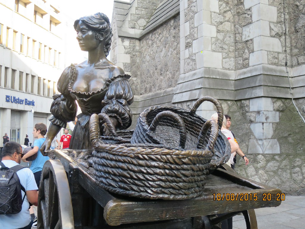 Otra emblemática escultura se encuentra cerca de esta calle. Concretamente en la calle Suffolk Street, al principio de Grafton St. y cerca del Trinity College. La estatua de bronce se situa junto a la Iglesia de St. Andrewsy frente al precioso pub de M.J. O’Neill. Se trata de la estatua en honor de Molly Malone, un joven pescadera ambulante.